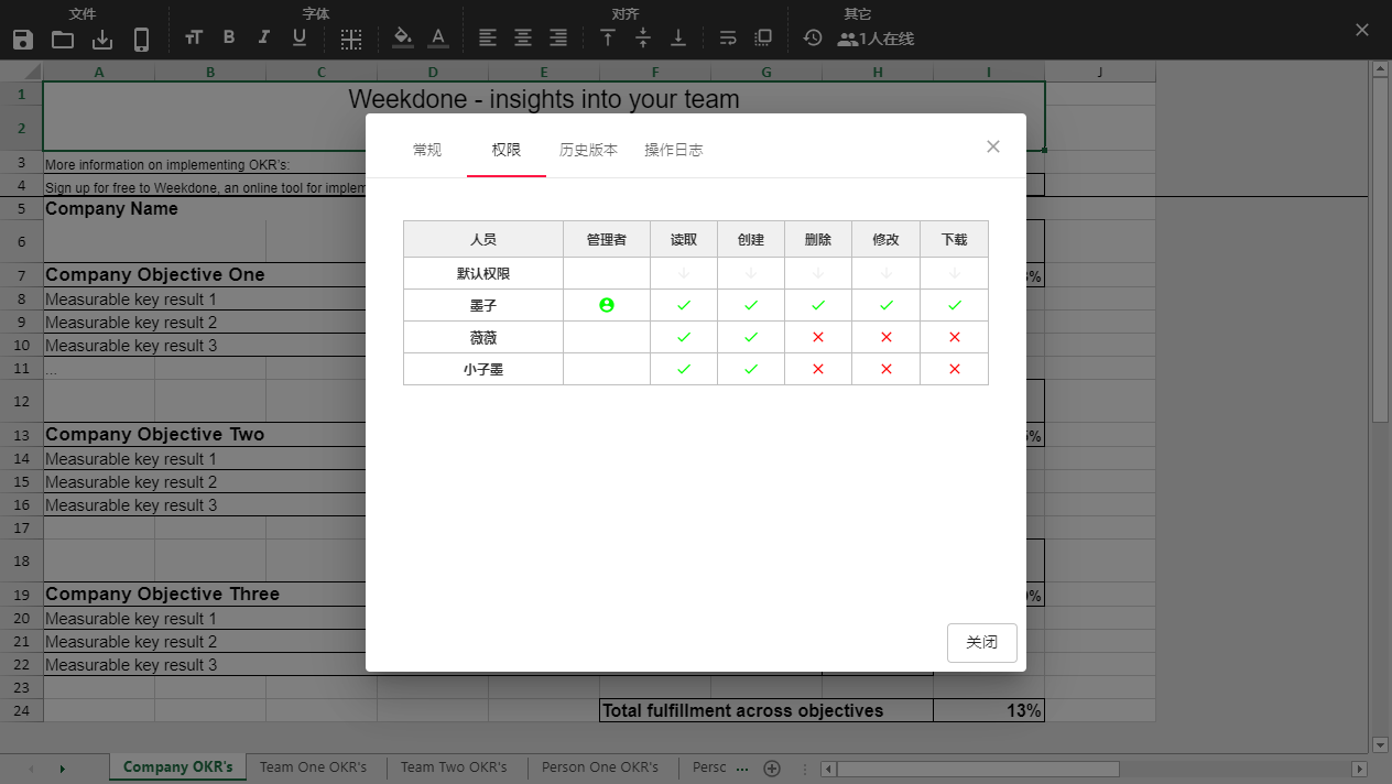 在超盘上新建一个电子表格,项目成员共同在线查看、在线编辑数据,并可设置只读权限