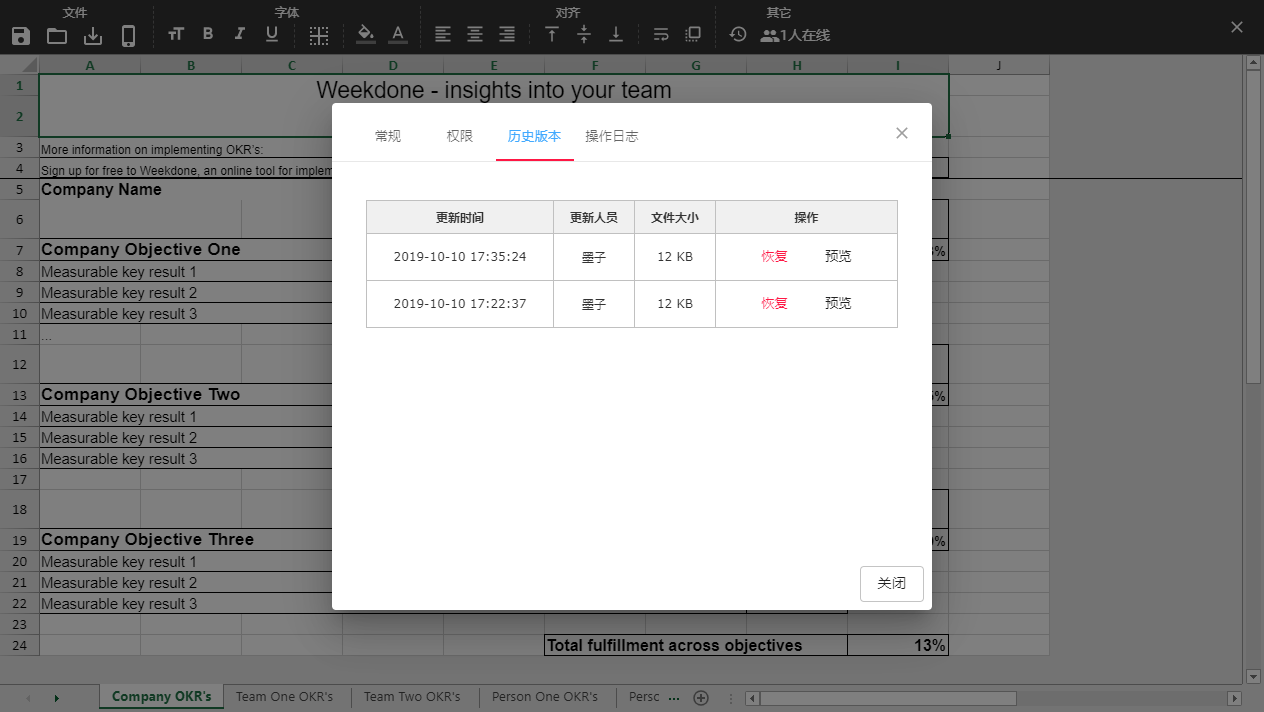 每次修改都有版本记录,随时预览历史版本并恢复,每次文件操作均保留日志。