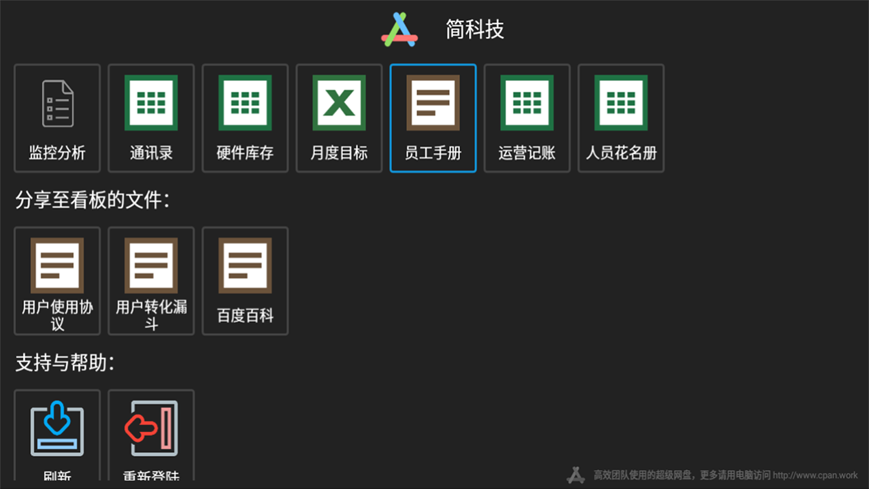 • 简单强大:众多场景化应用可选择,数据收集、电子看板、二维码展示、在线Excel编辑,总有适合你的应用