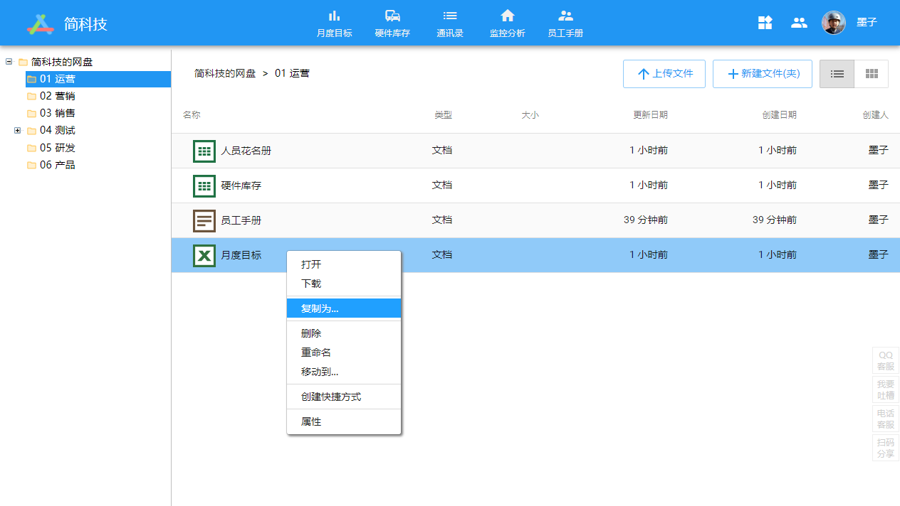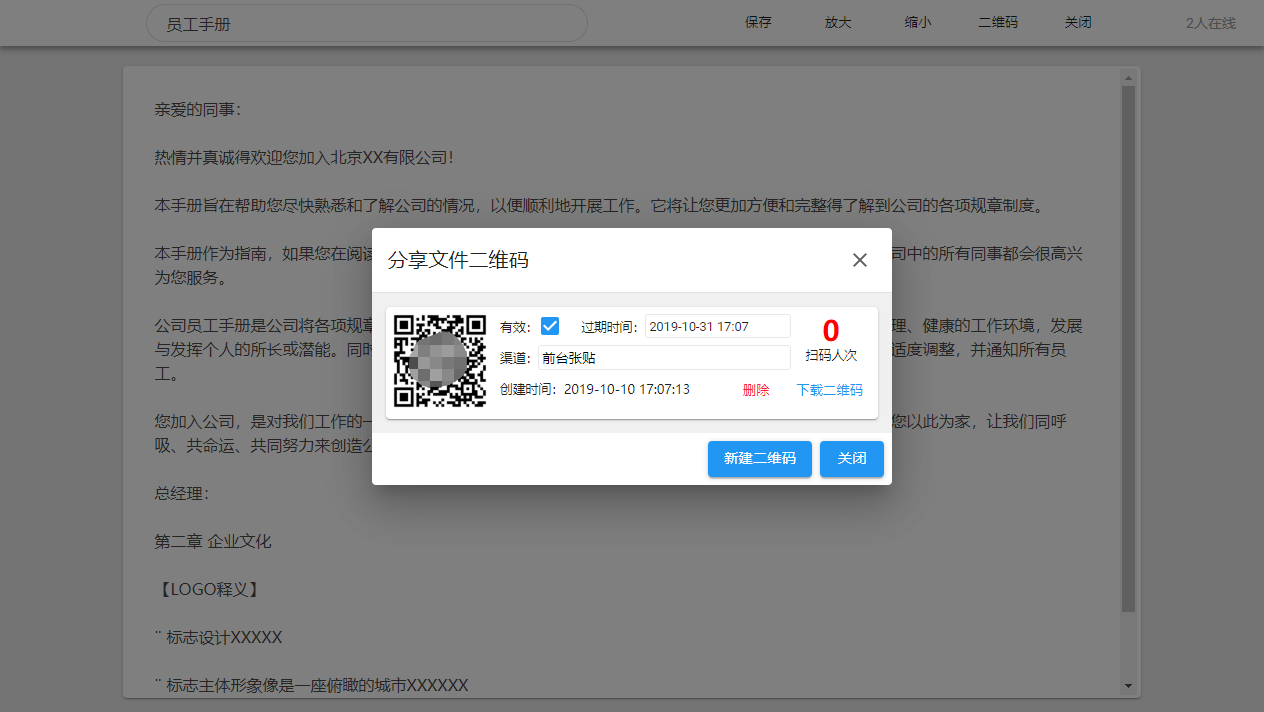向超盘上传库存表、施工方案文档、安全教育视频等,并制作二维码,张贴、扫码查看最新内容
