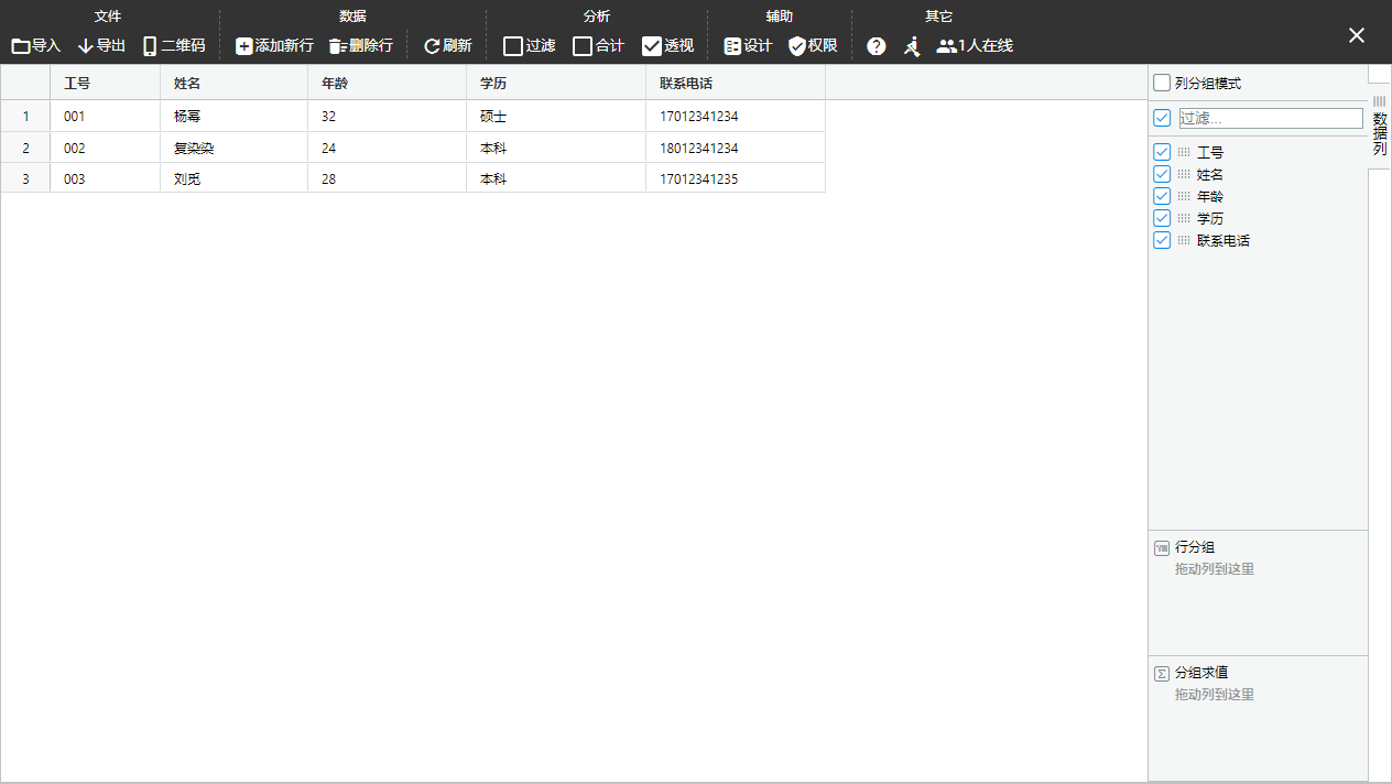具备数据收集、Excel在线编辑、电子看板播报、二维码分享等场景化应用